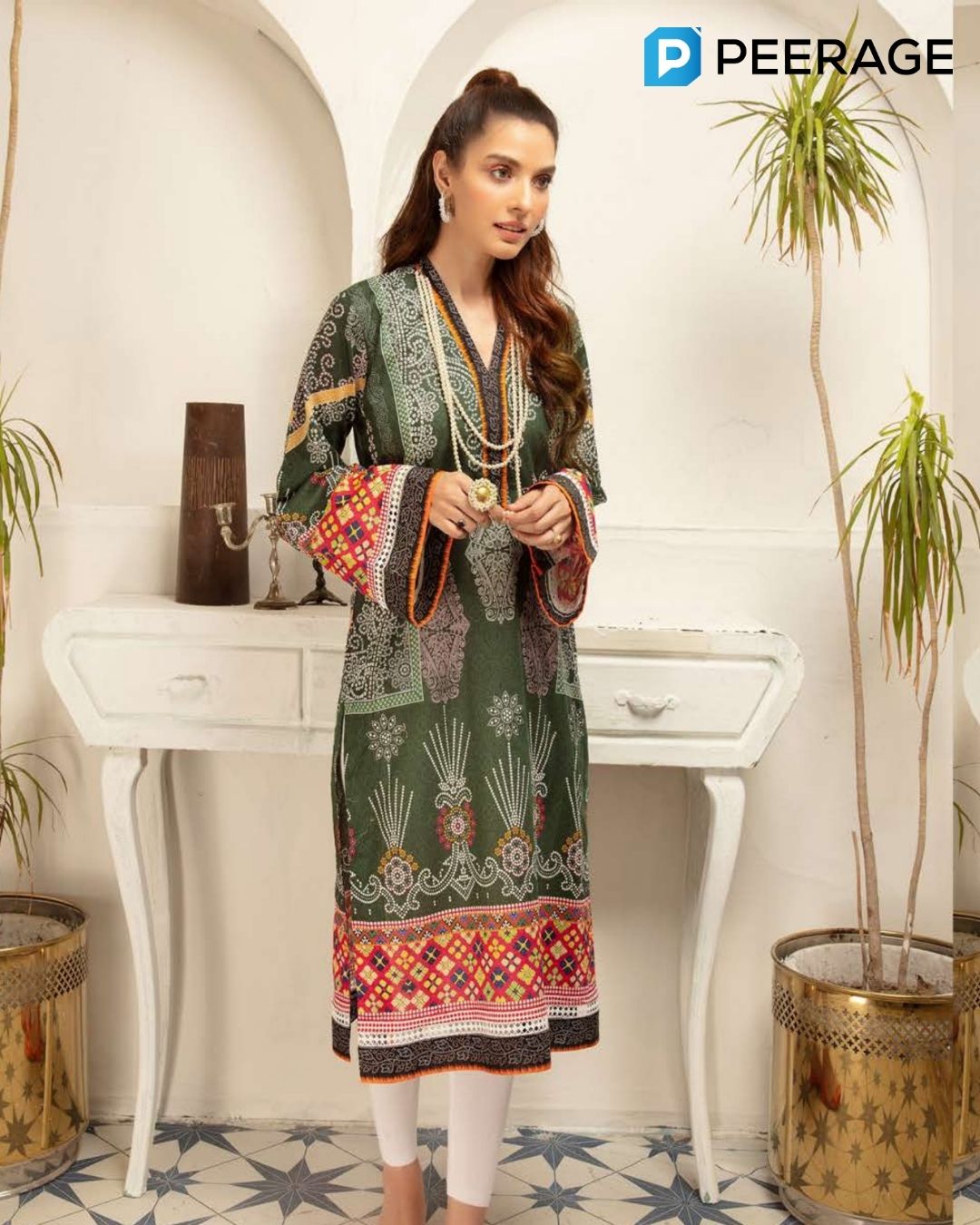Embrace effortless charm with this digital chunri printed lawn kurti in Green, blending traditional artistry with modern elegance. A perfect pick for a graceful everyday look.