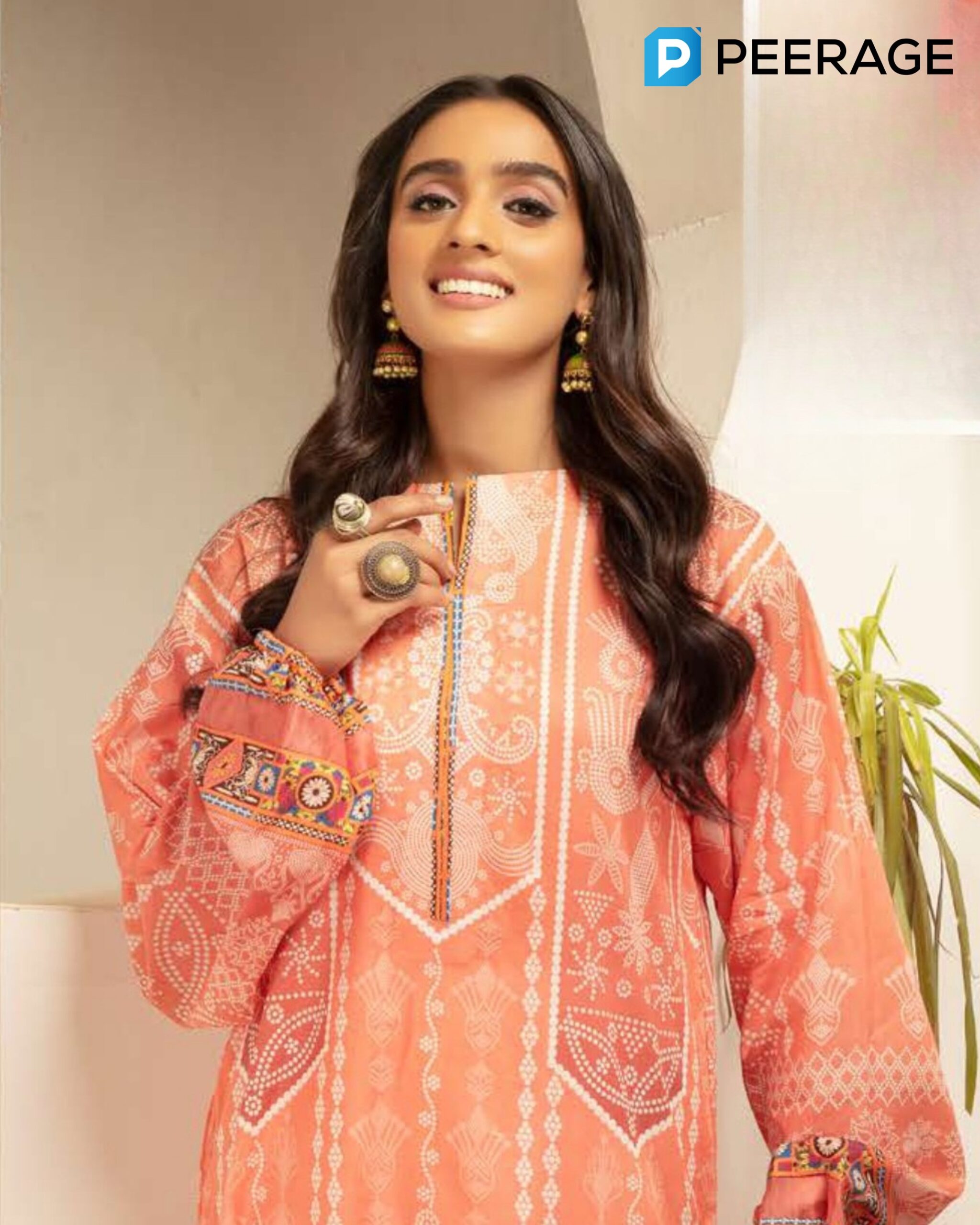 Embrace effortless charm with this digital chunri printed lawn kurti in Peach, blending traditional artistry with modern elegance. A perfect pick for a graceful everyday look.