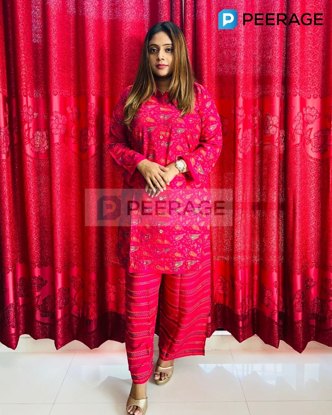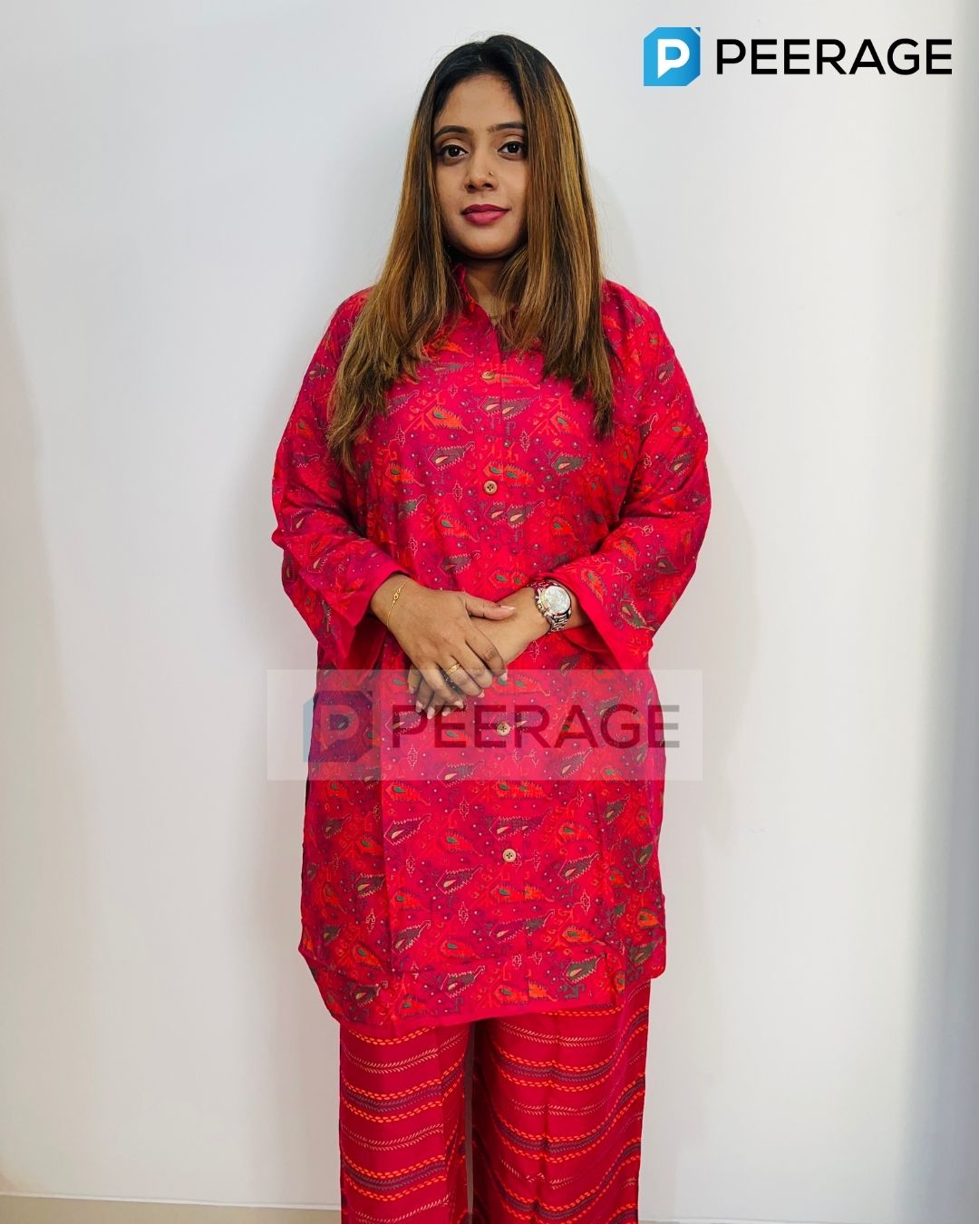 Brighten up your look with this magenta cotton co-ord set, paired with a palazzo-style pant for a trendy and effortless outfit. Perfect for a bold yet comfortable everyday style.